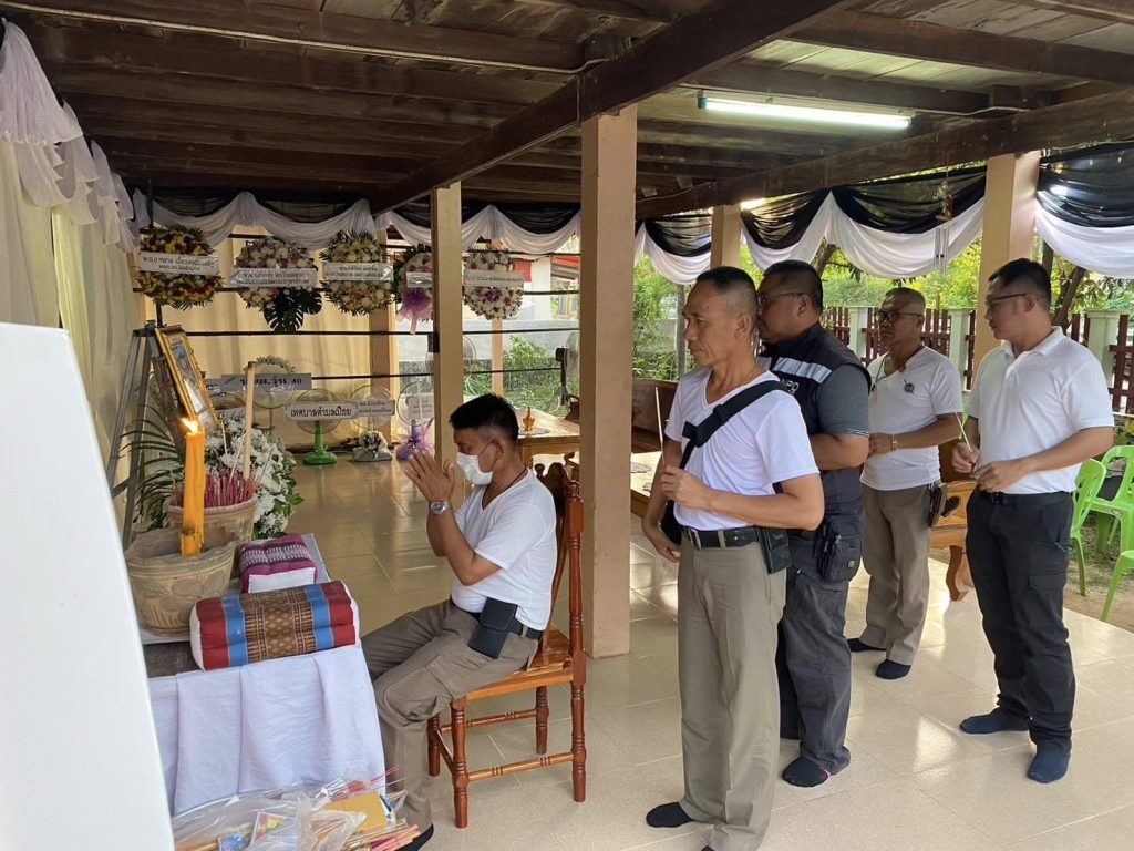 วันอาทิตย์ที่ 27 ตุลาคม 2567 เวลา 16.00 น. ณ ฌาปณสถานวัดป่าสามัคคีธรรม บ้านสะทอน ตำบลขวาว อำเภอเสลภูมิ จังหวัดร้อยเอ็ด การนี้ผู้บังคับบัญชา และข้าราชการตำรวจ สภ.ป่าโมก ทุกนาย ขอแสดงความเสียใจกับการสูญเสียมารดาของ ร.ต.ต.รังสรรค์ฯ โดยเมื่อวันที่ 25 ตุลาคม 2567 ที่ผ่านมา โดย พ.ต.อ.ศักดิ์ชัย ไกรวีระเดชาชัย ผกก.สภ.ป่าโมก นำโดย พ.ต.ท.ธวัชชัย จันปุ่ม สวป.สภ.ป่าโมก พร้อมข้าราชการตำรวจ สภ.ป่าโมก รวม 9 นาย ร่วมในงานสวดพระอภิธรรม และเป็นเจ้าภาพสวดพระอภิธรรม