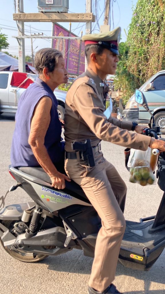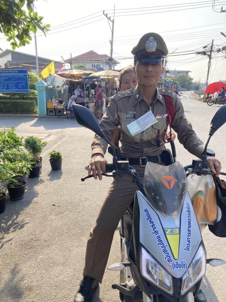 จากภาพได้พาคุณยายพยุงฯ อายุ 89 ปี ไปทำกายภาพฯ ณ โรงพยาบาลป่าโมก เนื่องจากคุณยายอยู่คนเดียว จึงไม่สะดวกในการเดินทาง ทาง ร.ต.อ.เนาวมาศฯ จึงอาสานำพาไปส่งเป็นประจำ ได้รับคำชื่นชมจากประชาชน และได้ส่งภาพและข้อความ มาช่วยประชาสัมพันธ์และชื่นชมการปฏิบัติหน้าที่ของ ข้าราชการตำรวจ สภ.ป่าโมก ในความเป็นผู้พิทักษ์สันติราษฎร์