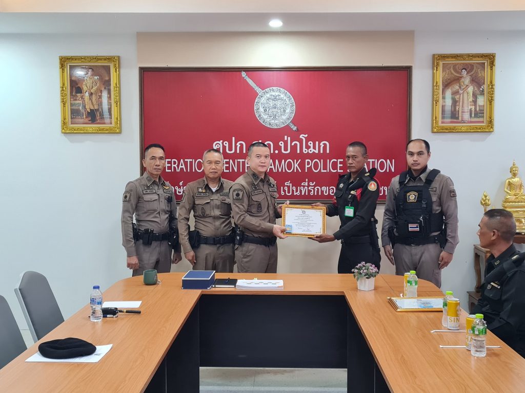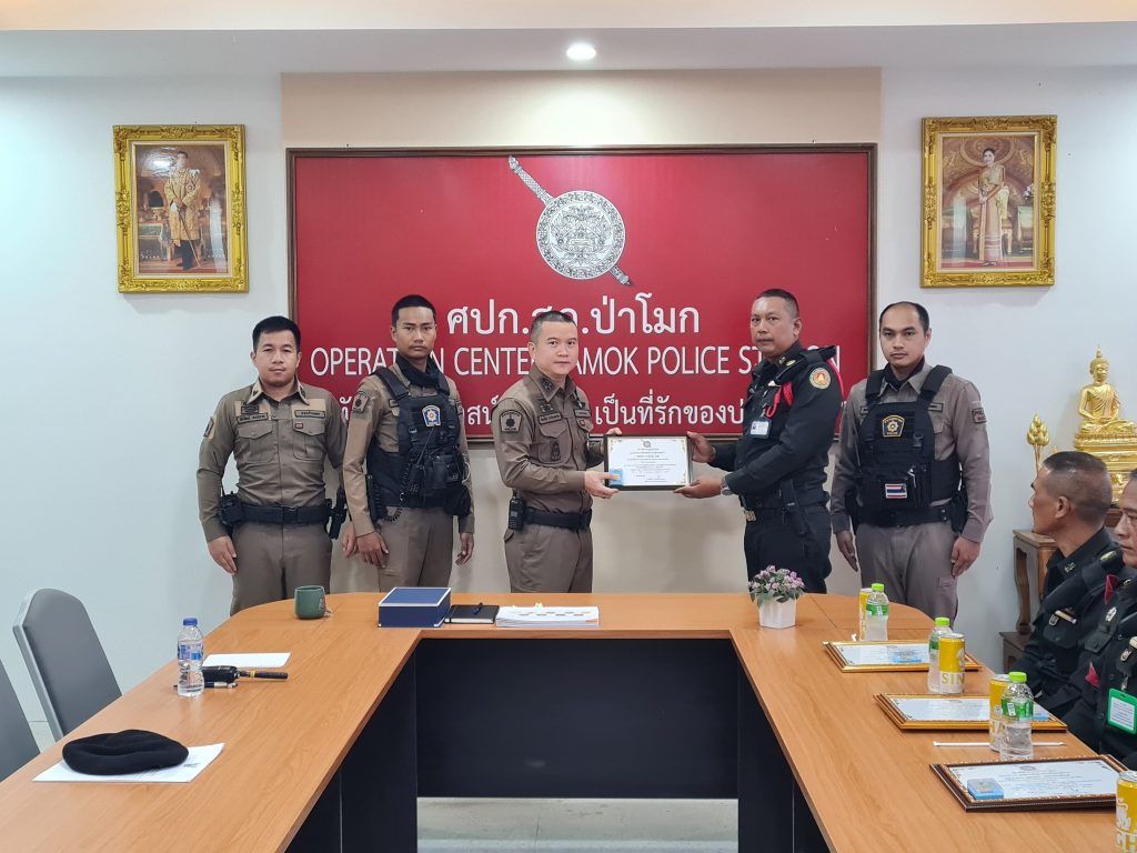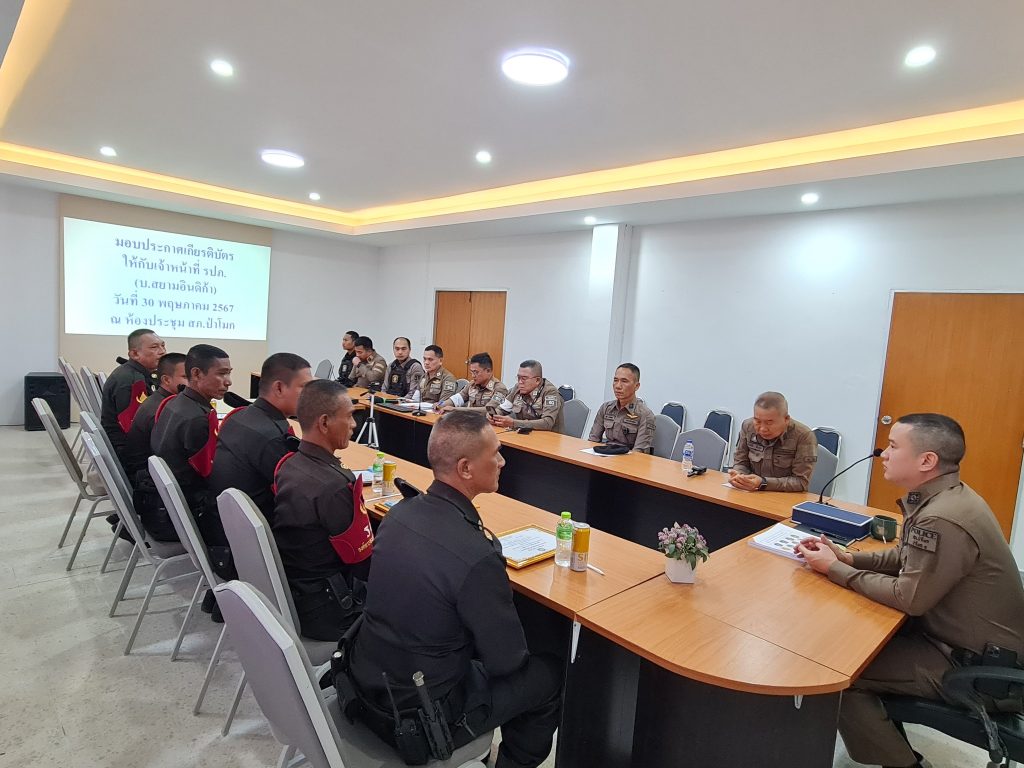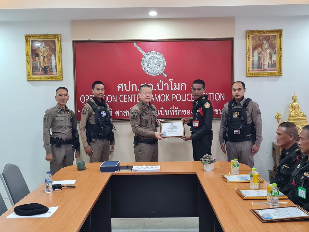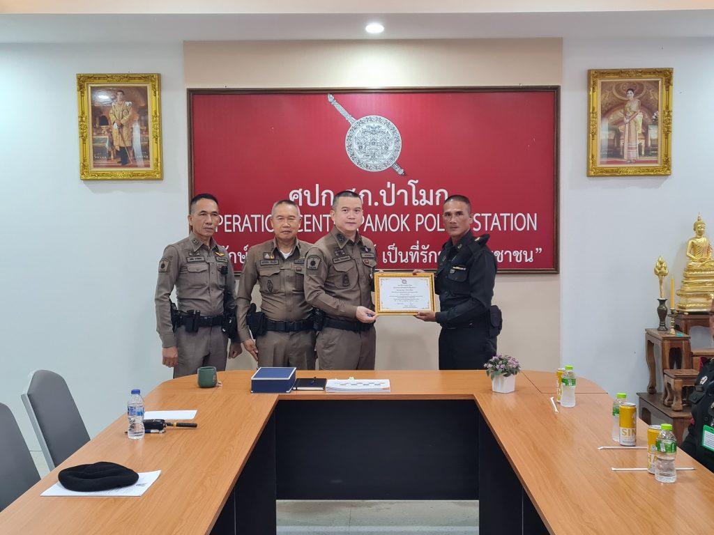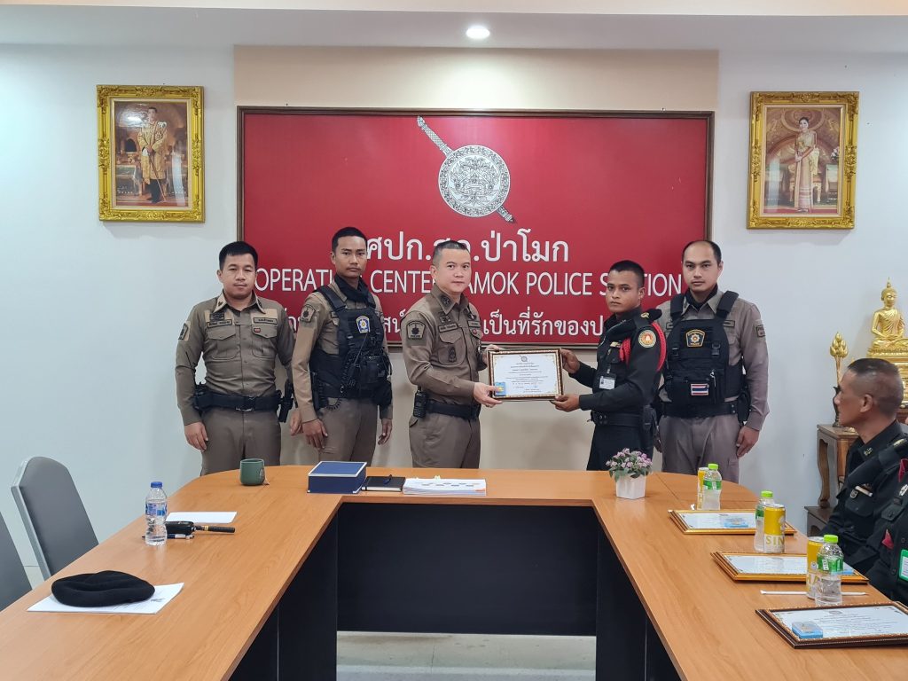 พ.ต.อ.ศักดิ์ชัย ไกรวีระเดชาชัย ผกก.สภ.ป่าโมก เป็นประธานมอบ ใบประกาศนียบัตร พร้อมเข็มรักษ์วินัยประจำ สภ.ป่าโมก ให้กับเจ้าหน้าที่รักษาความปลอดภัยขององค์การสงเคราะห์ทหารผ่านศึกในพระบรมราชูปถัมภ์ เพื่อเป็นขวัญกำลังใจที่ร่วมช่วยเหลือจับกุม ผู้ที่เข้ามาลักทรัพย์ บริเวณพื้นที่ของกรมธนารักษ์ (บริษัทสยามอินดิก้า) ม.6 ต.บางปลากด อ.ป่าโมก จว.อ่างทอง ในรอบเดือนพฤษภาคม 2567 ที่ผ่านมา จำนวน 2 เคส โดยได้ส่งมอบตัวผู้กระทำความผิดให้ เจ้าหน้าที่ตำรวจดำเนินการต่อไป สถานีตำรวจภูธรป่าโมก ขอขอบพระคุณ เจ้าหน้าที่รักษาความปลอดภัยขององค์กรสงเคราะห์ทหารผ่านศึกในพระบรมราชูปถัมภ์ ที่ปฏิบัติหน้าที่ ที่ได้รับมอบหมายอย่างดีเยี่ยม และเต็มกำลังความสามารถ รวมถึงระเบียบวินัยที่ดีทุกท่าน ทั้ง 6 นาย ด้วยครับ