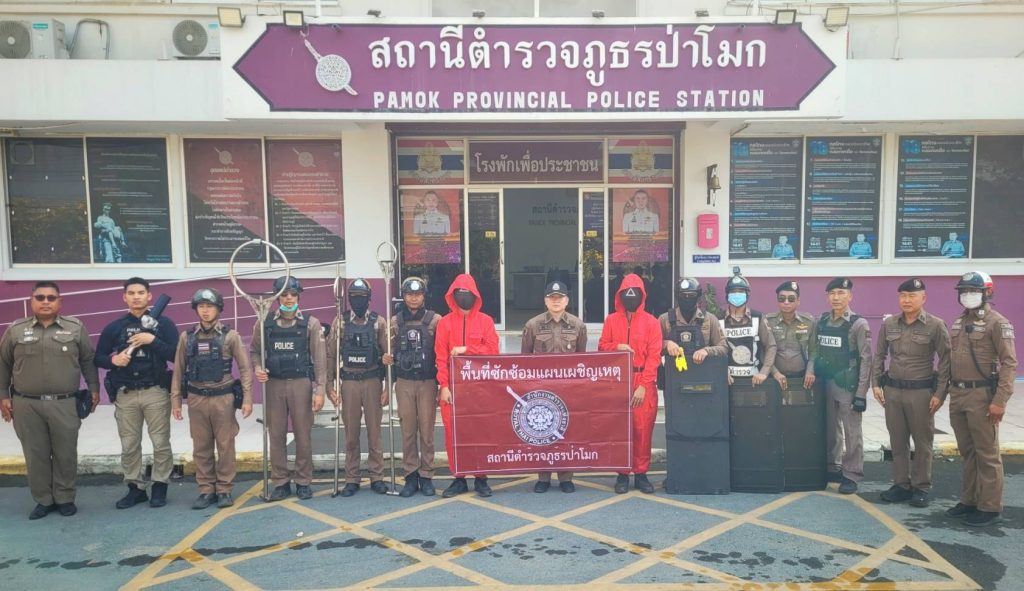 หลังจากนั้น ได้ทำการตรวจสอบการฝึกซักซ้อมแผนเผชิญเหตุคนคลุ้มคลั่ง โดยมีเจ้าหน้าที่ตำรวจ สภ.บางจัก ร่วมเฝ้าสังเกตการณ์ฝึกด้วย
