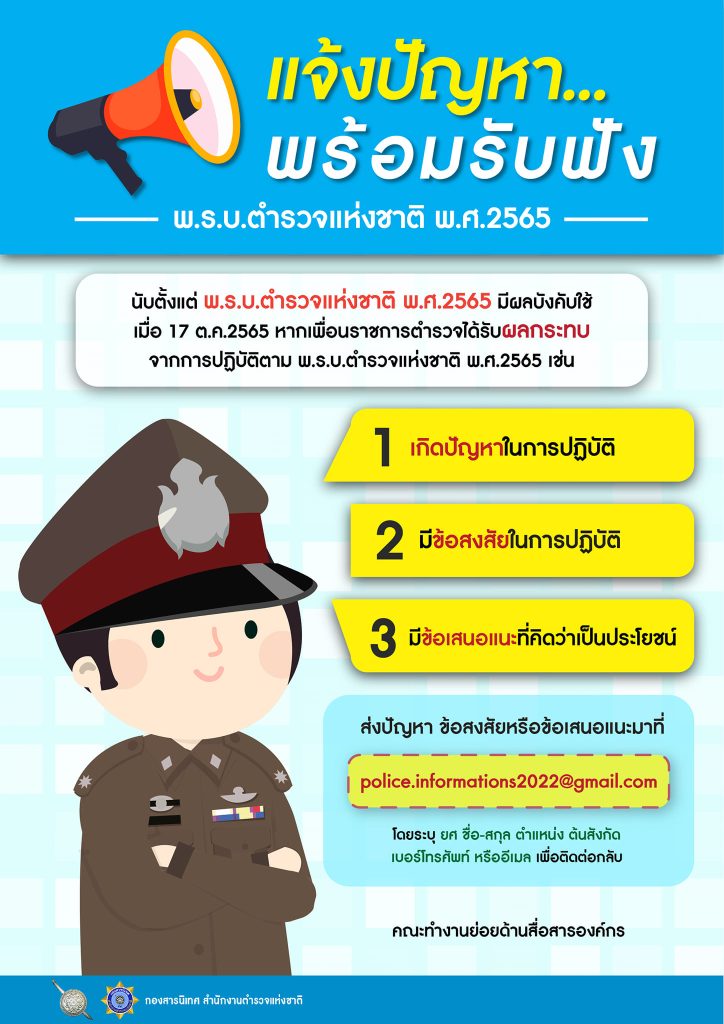 พ.ร.บ.ตำรวจแห่งชาติ พ.ศ.2565 เมษายน 21, 2567 โดย admin / ข่าวประชาสัมพันธ์,ข่าวประชาสัมพันธ์,ข่าวฝากประชาสัมพันธ์ หากข้าราชการตำรวจได้รับผลกระทบจากการปฏิบัติตาม พ.ร.บ.ตำรวจแห่งชาติ พ.ศ.2565 เช่น เกิดปัญหาในการปฏิบัติ มีข้อสงสัยในการปฏิบัติ มีข้อเสนอแนะที่เป็นประโยชน์ ส่งปัญหา ข้อสงสัยหรือข้อเสนอแนะ มาได้ที่ police.informations2022@gmail.com Facebook iconFacebookTwitter iconTwitterLINE iconLine