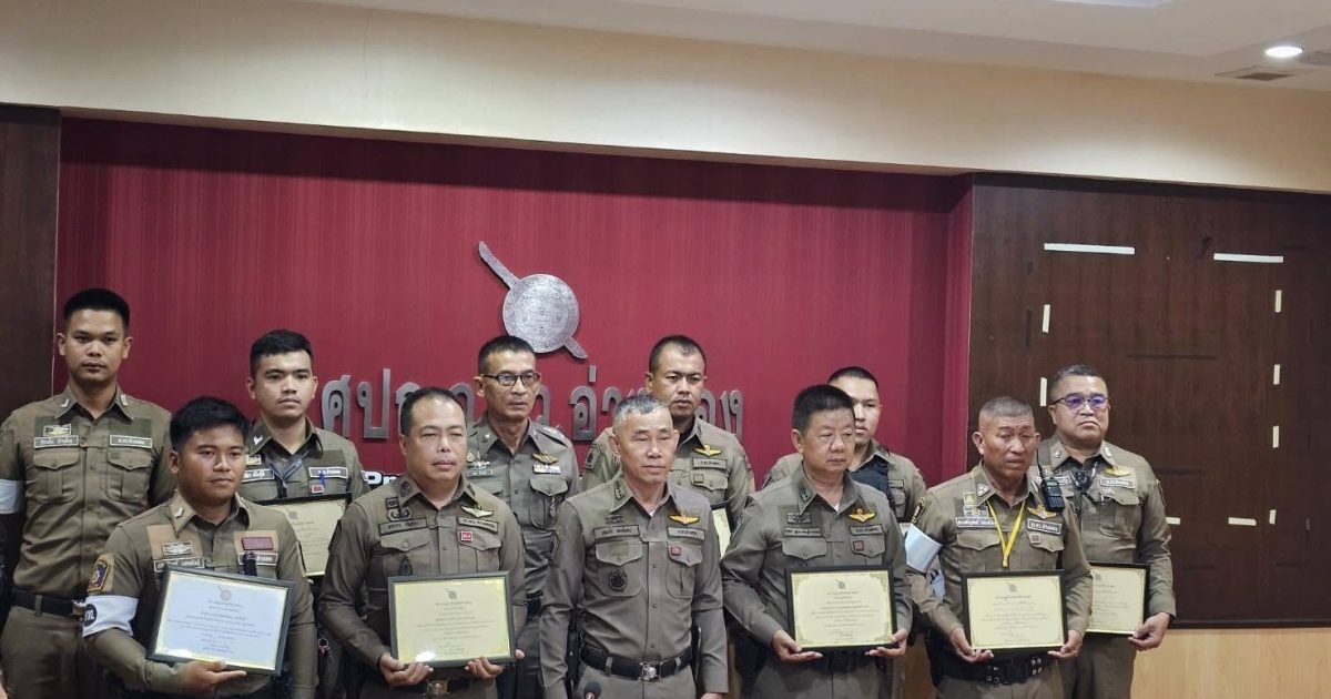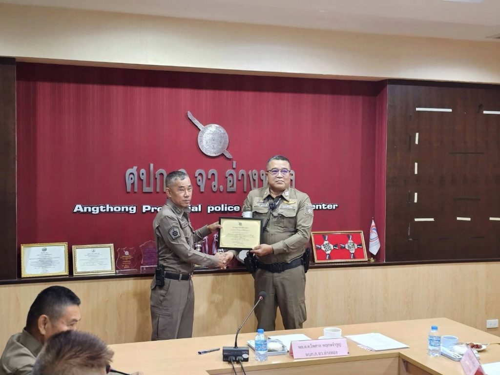 โดยมี พ.ต.อ.สมบัติ หงษ์ทอง รอง ผบก.ภ.จว.อ่างทอง เป็นผู้มอบ