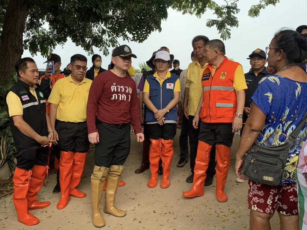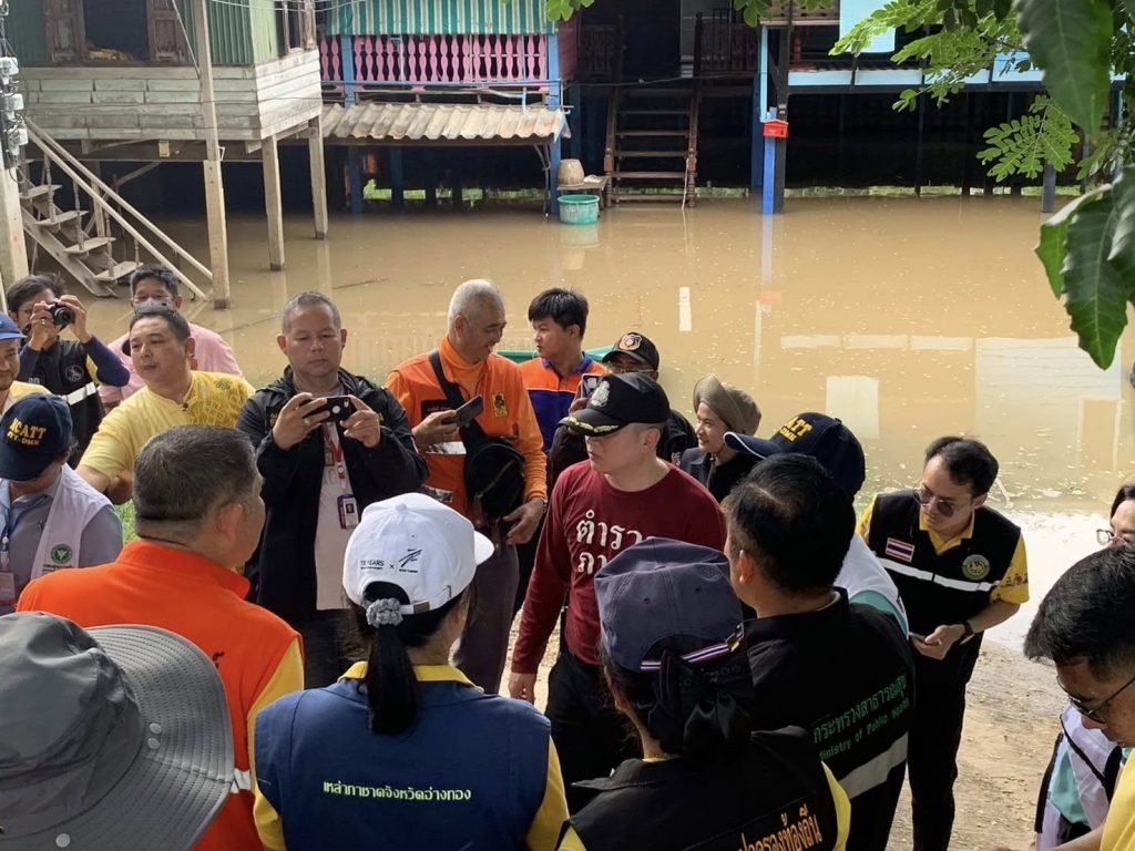 พร้อมเหล่ากาชาดจังหวัดอ่างทอง สำนักงานป้องกันและบรรเทาสาธารณภัย ฝ่ายปกครอง สาธารณสุข กอ.รมน. เจ้าหน้าที่ตำรวจ สภ.ป่าโมก ทหาร ผู้นำชุมชน ออกตรวจเยี่ยมให้กำลังใจ พร้อมมอบถุงยังชีพแก่ผู้ประสบอุทกภัย ต.โผงเผง