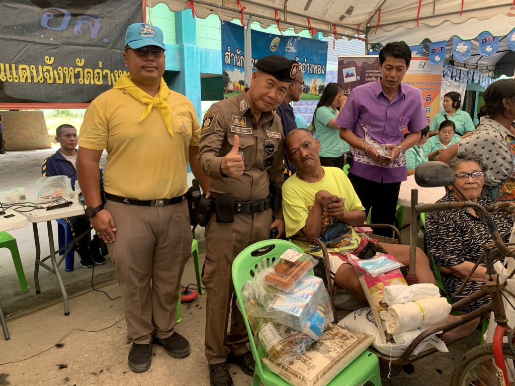 และโครงการ “หน่วยบำบัดทุกข์ บำรุงสุข สร้างรอยยิ้มให้ประชาชน” จังหวัดอ่างทอง ณ โรงเรียนปาโมกข์วิทยาภูมิ ม.3 ต.ป่าโมก อ.ป่าโมก จ.อ่างทอง