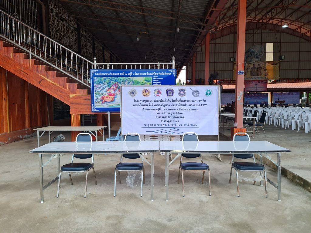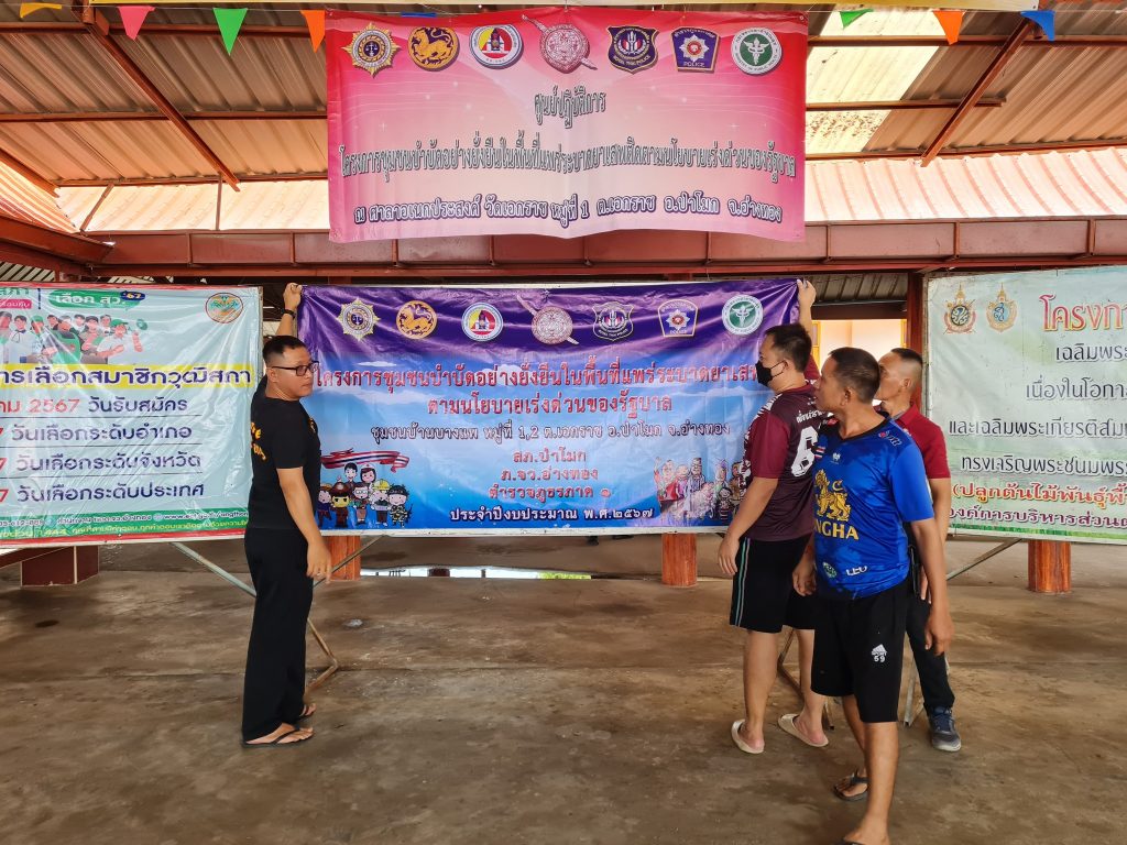 วันนี้ 9 มิถุนายน 2567 เวลา 15.00 น. โดยการนำของ พ.ต.อ.ศักดิ์ชัย ไกรวีระเดชาชัย ผกก.สภ.ป่าโมก พร้อมชุดปฏิบัติการ ร่วมด้วยช่วยกันจัดพื้นที่ในพิธีเปิดตามโครงการชุมชนบำบัดอย่างยั่งยืน ในพื้นที่แพร่ระบาดยาเสพติด ตามนโยบายเร่งด่วนของรัฐบาล ประจำปีงบประมาณ พ.ศ.2567 ในวันที่ 10 มิถุนายน 2567 เวลา 10.00 น. ณ วัดเอกราช ในการนี้ ทางสถานีตำรวจภูธรป่าโมก ขอกราบขอบพระคุณ นายศราวุธ เผ่าพยัฆ นายก อบต.เอกราช พร้อมด้วยทีมงาน ที่มาสนับสนุนทั้งแรงกาย แรงใจ พร้อมด้วยเครื่องไม้ เครื่องมือเป็นอย่างดี พร้อมทั้ง ผู้ใหญ่บ้าน ม.1 – ม.2 ผู้ช่วยฯ ตัวแทนคุ้มต่างๆ ในพื้นที่ พร้อมทั้งเจ้าหน้าที่วัดเอกราช พร้อมทั้งพระภิกษุสงฆ์ ที่ร่วมแรง ร่วมใจ เพื่อขับเคลื่อนโครงการไปได้ด้วยดี