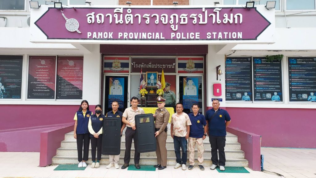 ได้มอบโล่เหล็กกันกระแทกให้กับเจ้าหน้าที่ตำรวจฝ่ายป้องกันปราบปราม และฝ่ายสืบสวน สภ.ป่าโมก และเจ้าหน้าที่ฝ่ายปกครอง อำเภอป่าโมก เพื่อใช้ในการปฏิบัติหน้าที่เข้าระงับเหตุบุคคลคลุ้มคลั่งในพื้นที่รับผิดชอบต่อไป