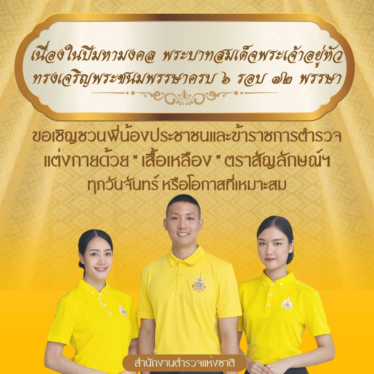 ขอเชิญชวนพี่น้องประชาชนและข้าราชการตำรวจ แต่งกายด้วยเสื้อเหลือง ตราสัญลักษณ์ ฯ