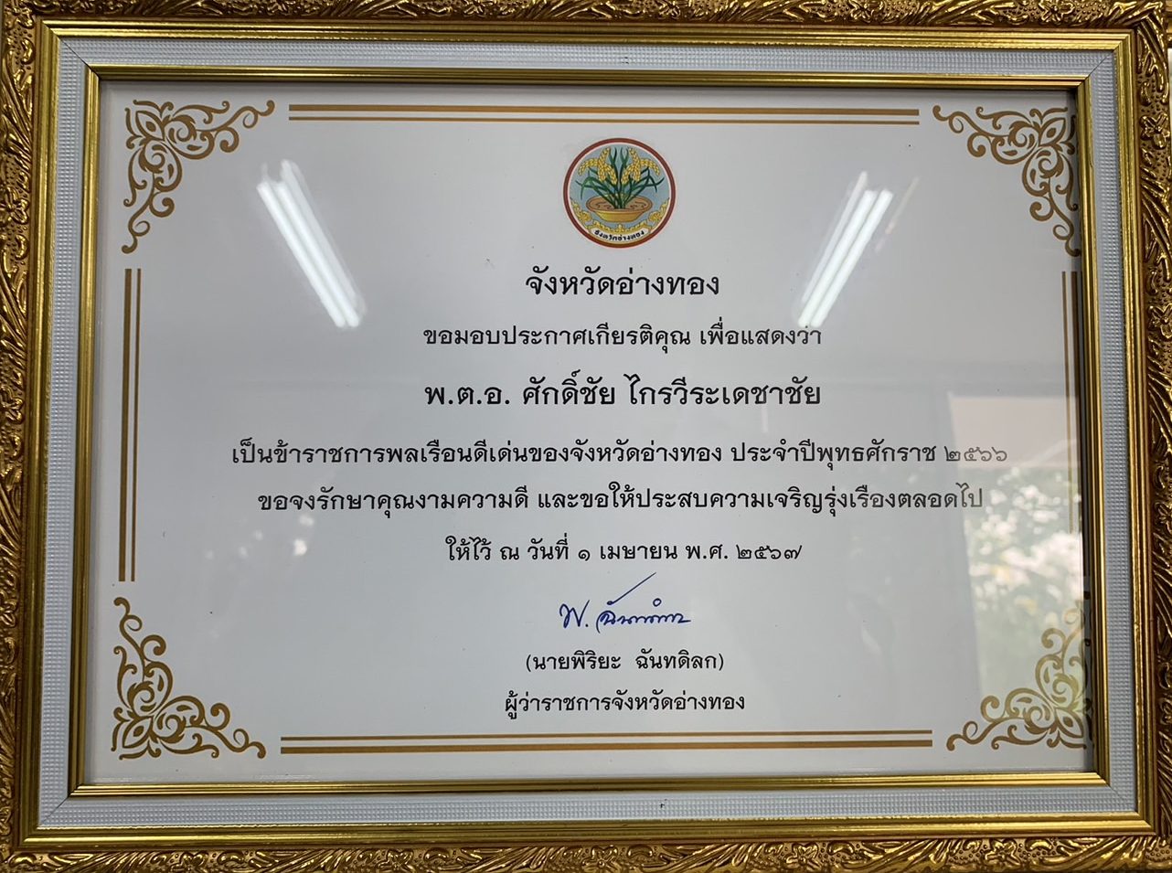 คณะกรรมการจังหวัดอ่างทองได้คัดเลือกให้ พ.ต.อ. ศักดิ์ชัย ไกรวีระเดชาชัย ผู้กำกับการสถานีตำรวจภูธรป่าโ