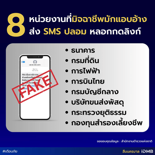 8 หน่วยงานที่มิจฉาชีพมักแอบอ้าง ส่ง SMS ปลอม หลอกกดลิงก์