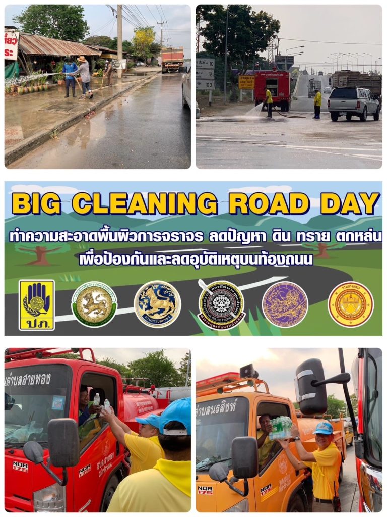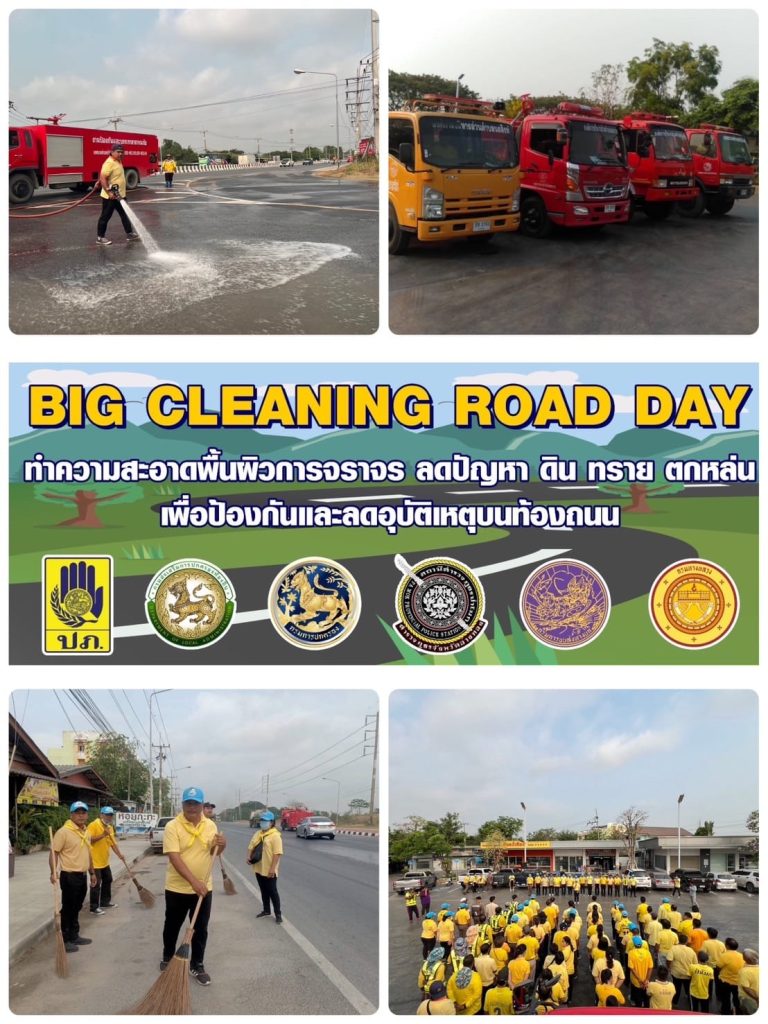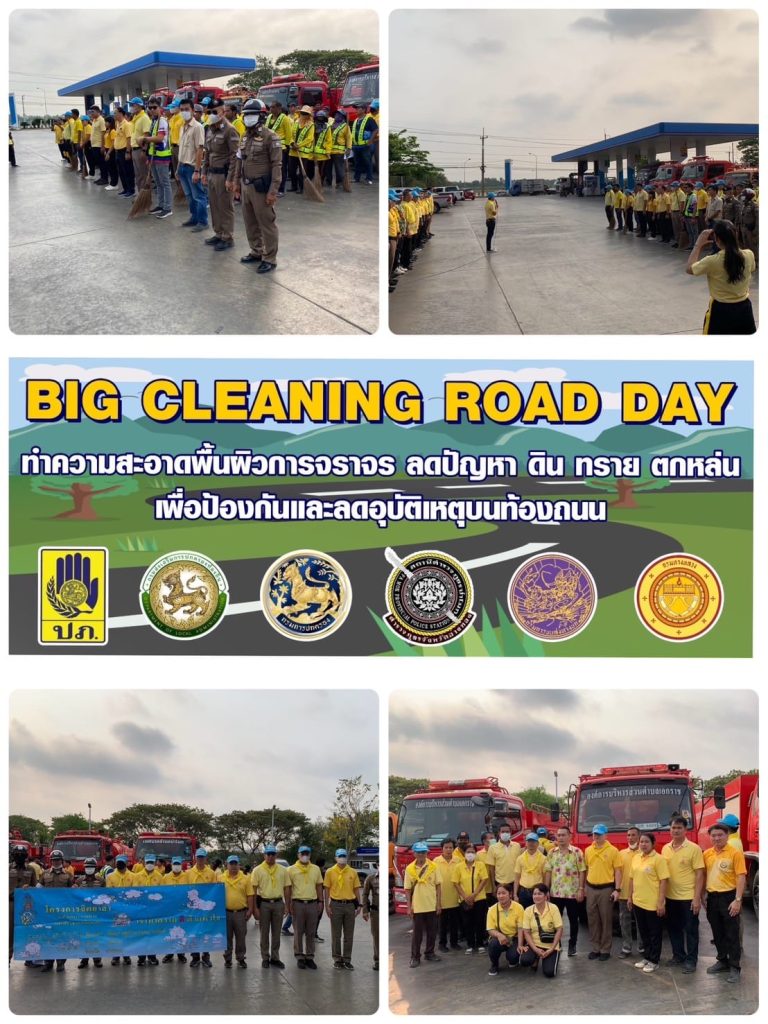 พร้อมผู้บริหารในพื้นที่ หัวหน้าชุมชน จิตอาสา สภ.ป่าโมก เจ้าหน้าที่ตำรวจจราจร สภ.ป่าโมก ผู้ประกอบการในพื้นที่ และประชาชนจิตอาสา ปล่อยแถวร่วมกิจกรรมจิตอาสา (BIG CLEANING ROAD DAY) ทำความสะอาดพื้นผิวการจราจร ลดปัญหา ดิน ทราย ตกหล่น เพื่อเป็นการป้องกัน ลดการเกิดอุบัติเหตุทางถนน และบรรเทาปัญหาฝุ่นผงทรายให้กับพี่น้องประชาชนในพื้นที่ และประชาชนทั่วไปที่จะเดินทางกลับภูมิลำเนาในพื้นที่ต่างจังหวัดช่วงเทศกาลสงกรานต์ 2567 ณ ปั้มน้ำมัน ปตท. ถนนป่าโมก – สุพรรณบุรี (33) ตำบลป่าโมก อำเภอป่าโมก จังหวัดอ่างทอง