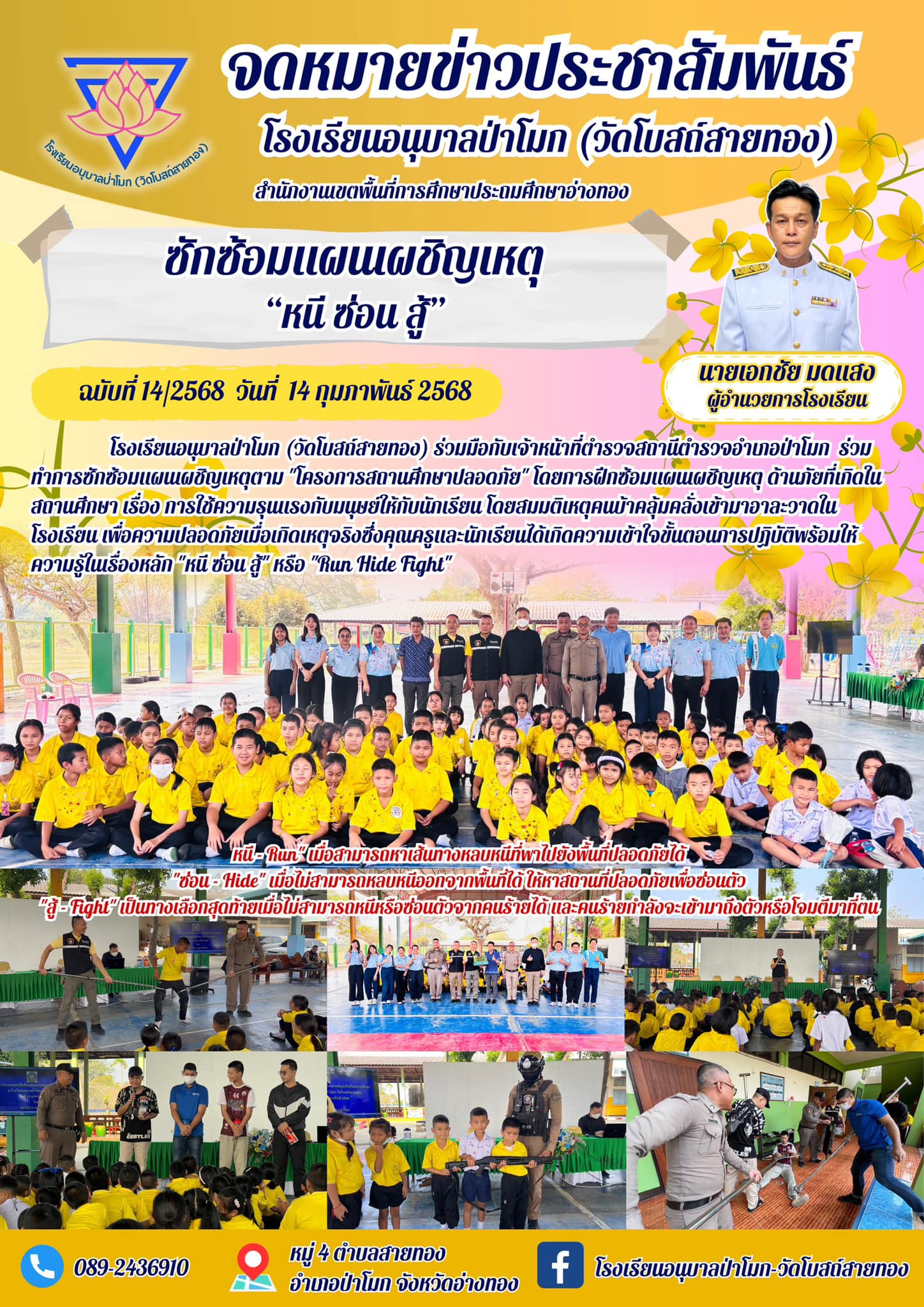 วันที่ 14 กุมภาพันธ์ 2568 โรงเรียนอนุบาลป่าโมก (วัดโบสถ์สายทอง) ร่วมมือกับเจ้าหน้าที่ตำรวจสถานีตำรวจ